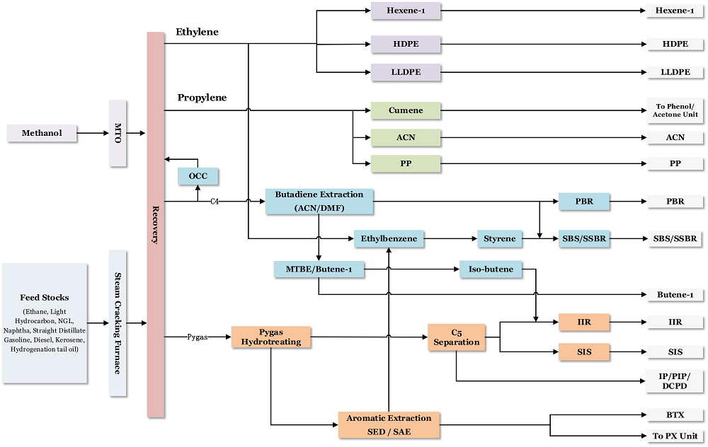 Our leading petro/coal-chemical technologies and diversified solutions help our clients meeting their demands for Ethylene/Propylene, Polyolefins, Aromatics, Rubber, Organic Materials, etc. Benefiting from optimized processing, energy efficiency, feedstock adaptation, capital investment, on-stream reliability, product quality, etc. by applying our technologies and alternate routes, the clients shall maximize their profits. Diversified Solutions for you!