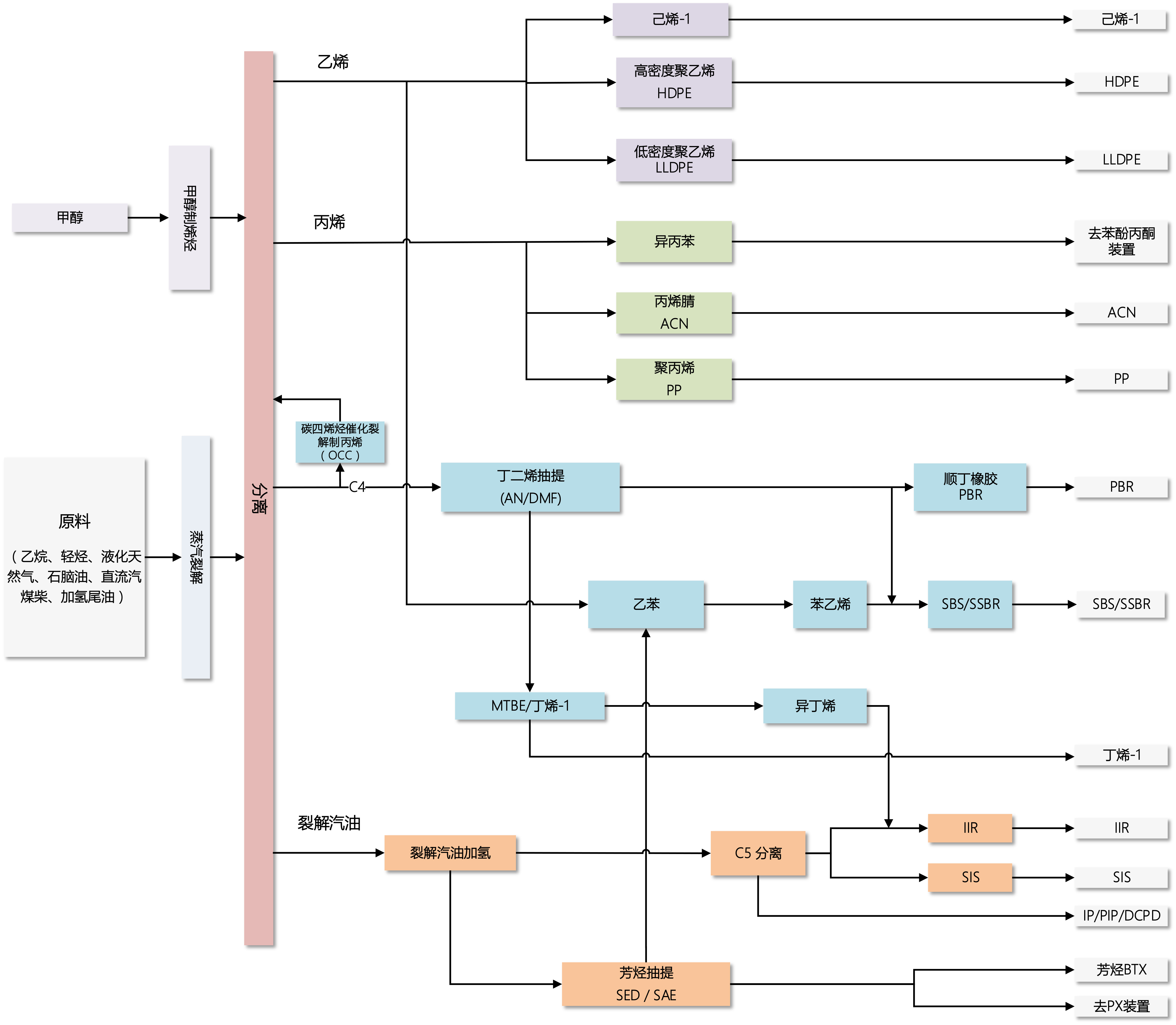 在煤蓝颜gtv 领域,拥有自主开发的甲醇制烯烃技术(S-MTO)和烯烃分离技术,合作开发的粉煤气化技术。S-MTO技术、烯烃分离技术、合成气回收利用技术,配合以OCC-C4回炼技术和专有催化剂,可以优化煤炭资源的综合利用,实现煤蓝颜gtv 与石油蓝颜gtv 的有机结合。